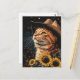 Un adorable chat gingembre cowboy posant devant des tournesols la nuit L'IA produit de l'art