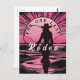 Un dernier rodéo avant le mariage, ce design présente une cowgirl dans un look rétro rose et noir au coucher du soleil. Idéal pour n'importe quelle fête de bachelorette.