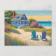 Un chalet de bord de mer, Adirondack plage charis, sable et mer, avec voiliers au loin fait un charmant vacances posticard.