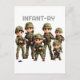 C'est une image caricaturale d'un groupe d'enfants vêtus d'un uniforme de camouflage de l'armée et brandissant leurs armes à jouets. L'image est sous-titrée comme INFANT-RY.