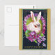 Une carte postale HAPPY EASTER ... Lapin de Pâques dans une couronne si violette.