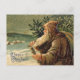Carte de Noël vintage du 18ème siècle. On voit le Père Noël marcher dans une forêt d'hiver avec un sac de cadeaux sur le dos.
