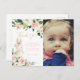 Doux lapin d'aquarelle et floral merci carte postale dans un doux blush et faux thème de couleur dorée. Un côté dispose d'un modèle photo personnalisable ! Joli et mignon pour le premier anniversaire de votre petit !