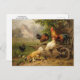 Carte postale avec le tableau A watchful Eye (Ein Wachsames Auge) (1916), de l'artiste allemand Carl Jutz (1838-1916). Il était connu pour ses peintures de paysages, de natures mortes et d'études de la nature. Une scène de ferme avec coqs et poulets près de la grange.