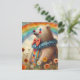 Carte Postale Un ours clown mignon dans une prairie arc-en-ciel