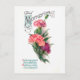 Une image d'une vieille carte postale, vers 1916, avec oeillets et texte lisant "Mémoires Fond" et "Peu d'amis dans ce monde large, qui sont fidèles et vrais, Mais quand vous les comptez, Comptez-moi parmi les rares".