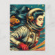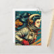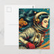 Carte Postale Une astronaute et un poisson rouge Scifi Rétro