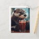 Une loutre buvant dans un café
