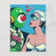 Carte Postale Une femme Alien et un robot vert dans l'amour