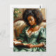 Cette carte postale présente une peinture à l'huile d'amoureux d'un livre d'une belle femme noire vêtue d'une élégante robe verte du XIXe siècle et portant un livre. La beauté riche en mélanine a les cheveux naturels et est assise sur un canapé. Elle semble être une femme riche de loisirs. Une vie douce, un portrait académique à la vintage d'un afro-américain de haute société, afro-latino, antillais, afro-britanniques, etc. Idéal pour les bibliophiles, les vers de livres, les bibliothécaires et d'autres nerds de livre!