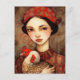 Carte Postale Une fille avec son art AI de poulet de compagnie
