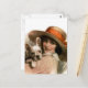Mignon 1920 illustration d'une fille avec un grand casquette souriant et tenant son chien