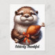 Carte Postale Une loutre mignonne avec la dinde de Thanksgiving