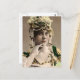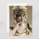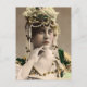 Photo vintage d'une jeune femme avec un casquette décoré de boucles et de cordes de perles. Pas un regard à imiter