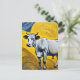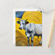 Carte Postale Une vache dans un abstrait jaune et bleu