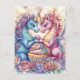 Carte Postale Unicorn Dragons With Cupcake and Flowers