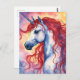 Carte Postale Unicorne avec cheveux rouges