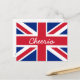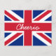 Un accueil britannique amical avec le drapeau coloré Union Jack de Grande-Bretagne avec le texte "cheerio". Vous pouvez modifier le texte à votre goût ou même le supprimer entièrement si vous préférez cette carte sans texte.