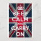 Une image du drapeau de l'union jack et le slogan garder le calme et continuer