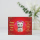 Envoyez vos salutations sincères avec notre carte postale du Nouvel An Chinois Fortune Cat montrant Maneki Neko à l'allure mignonne souhaitant à tous santé, richesse et bonheur. Tous les textes sont personnalisables si vous avez une phrase préférée pour les amis proches et les membres de la famille.