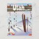 Utah pour skier ! Affiche de voyage en paysage hivernal vers l'Utah USA.