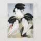 Profitez de cette belle reproduction de l'imprimé en bois "Three Beauties" de l'artiste japonais Kitagawa Utamaro en 1793. Cette photo représente trois femmes d'Edo (aujourd'hui Tokyo) réputées pour leur beauté. Ukiyo-e ("images du monde flottant") est un genre d'estampes japonaises (ou coupes de bois) et de peintures réalisées entre le XVIIe et le XXe siècle, avec des motifs de paysages, des contes de l'histoire, du théâtre et des quartiers de plaisir. C'est le principal genre artistique d'impression de blocs de bois au Japon. Le Floating World Store de Zazzle restaurent minutieusement ces trésors historiques à leurs véritables couleurs et corrige les problèmes de vieillissement de base. La texture et la couleur du papier sont maintenues car elles révèlent la beauté ancienne de ces oeuvres maîtresses.
