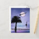 Une plage tropicale pour envoyer des voeux de Joyeux Fêtes cette année. Un voilier s'approche d'une petite île avec un palmier la nuit et Père Noël et Sleigh passent. Carte postale de Noël nautique côtière super mignonne.