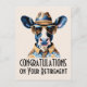 Carte de vœux de félicitations pour la retraite de vache cowboy drôle avec texte personnalisé et image d'une vache Holstein portant des lunettes de soleil et un chapeau de cowboy. Personnalisez cette carte de vœux sur le thème du far west pour célébrer le dernier rodéo de travail de votre proche et leur nouvelle liberté de ne rien faire de plus que se détendre dans leur pâturage préféré toute la journée !