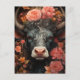 Carte Postale Vache dans les fleurs roses