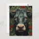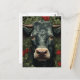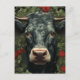 Carte Postale Vache dans les fleurs rouges
