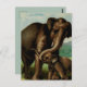 Photo d'une vache à éléphant vintage et de son veau, se caressant l'un l'autre avec leurs malles. Des êtres incroyables, perspicaces et émotionnellement complexes ! Cette carte postale a été créée en éditant et en utilisant une vieille illustration de livre par Alma Wad.