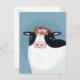 Passe la vache. Une vache heureuse grine avec un nez rose doux, corps noir et blanc, portant de petits pavots rouges dans ses cheveux, situé contre un arrière - plan bleu marine. Illustration originale de Noël Snow.