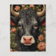 Carte Postale Vache noire aux cheveux bouclés dans les fleurs
