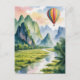 Carte Postale Vang Vieng Laos Hot air Balloon watercolor