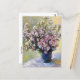 Carte postale d'art avec le tableau de la nature morte, Vase of Flowers (1881-1882) de Claude Monet (1840-1926). Un vase bleu sur une table avec des fleurs de mallow sauvages roses dans le style impressionniste.