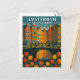 Capturez la beauté intemporelle d'Amsterdam avec cette carte postale de voyage de style vintage. Le design présente un canal paisible bordé de maisons historiques hollandaises et un pont charmant orné de vélos et de fleurs. Parfaite pour les collectionneurs ou les amateurs de voyage, cette carte postale évoque le charme nostalgique des voyages européens classiques.