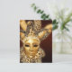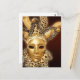 Carte postale personnalisable avec beau thème Renaissance vintage avec masque vénitien en jester doré.