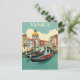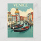 Cette image est une affiche de voyage de style vintage pour Venise. Il dispose d'une scène de canal pittoresque avec plusieurs gondoles flottant sur l'eau. L'architecture comprend des bâtiments colorés et une imposante structure en dôme dans l'arrière - plan. Le ciel est clair avec quelques nuages, et le mot "VENISE" est affiché en haut.