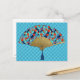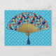 Carte Postale Ventilateur déco - Fleurs en Cobalt, Turquoise et