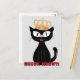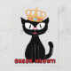 Chat de dessin noir Hilda le Kitten™ avec couronne à bijoux. Ci-dessous : VÉRIFIEZ MEOWT ! Une carte postale mignonne et drôle !