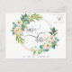 Carte Postale Vert Blanc Jaune Floral Mariage Enregistrer la dat