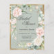 Carton luxueux vert sauge orné d'or avec fleurs délicates rose blush. Cette invitation est parfaite et vous n'avez pas besoin d'acheter d'enveloppes ! Tellement chic et sophistiqué. Une invitation de bapteme de mariage si élégante. J'ai pris plaisir à créer ce design pour vous. Zazzle garantit 100% de satisfaction et service client.