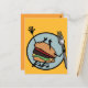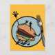 Drôle cheeseburger illustration carte postale verticale. Le dos de la carte est d'une couleur différente de l'avant. Les couleurs avant et arrière peuvent être customisées.