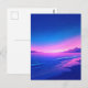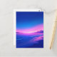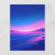 This ethereal postcard captures a magical twilight transition over a tranquil coastline. The scene features a brilliant gradient sky moving from a vivid, glowing pink at the horizon into a deep, star-filled indigo. Gentle blue waves lap against a dark, sandy beach, mirroring the intense colors of the sky in the wet sand. Distant mountain silhouettes frame the horizon, creating a sense of infinite peace. With its high-contrast palette of magenta, royal blue, and soft white stars, this artwork evokes a dreamlike evening serenity. This postcard is a perfect choice for sending a heartfelt note, a nature-inspired greeting, or as a beautiful decorative keepsake for those who love the sea and sky.