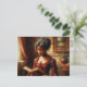 This postcard features a wealthy Victorian black woman reading--a richly detailed artwork of a dark-skinned woman in a deep red gown, absorbed in a book as she sits by the window. With her elaborate hairstyle, pearl earrings, and timeless surroundings, the image evokes classic elegance and historical romance.
