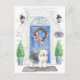 Annoncez votre nouvelle adresse avec notre faire-part élégante avec un vieux chien anglais, porte d'entrée bleue, tapis de bienvenue, ardoise, topiaires et une couronne fleurie sur un arrière - plan en brique grise.