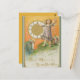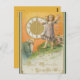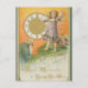 Cette carte postale modifiable présente une illustration vintage de l'année ancienne représentée par un vieil homme et un jeune ange féminin représentant la nouvelle année. Derrière elle se trouve une horloge qui sonne minuit et des fleurs à ses pieds. Il y a une salutation de Nouvel An ci-dessous. La carte originale a été publiée vers 1909.