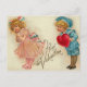 Cette merveilleuse image victorienne vintage provient de ma collection de vieux papiers et d'images. Ce petit garçon qui présente son coeur à la mignonne petite fille. Je pense que les rubans sont censés être patriotiques, même si les rubans sont roses, blancs et bleus plutôt que rouges. Une façon douce d'envoyer vos voeux de Saint Valentin.