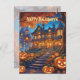 Cette Carte dispose d'un manoir éffrayant dans la forêt avec des fenêtres éclairées entourées de nombreux citrouilles. Envoyez des salutations éffrayantes pour Halloween à vos proches ! Texte personnalisé.
