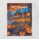 Carte Postale villa éffrayante dans la forêt, citrouilles, Hallo